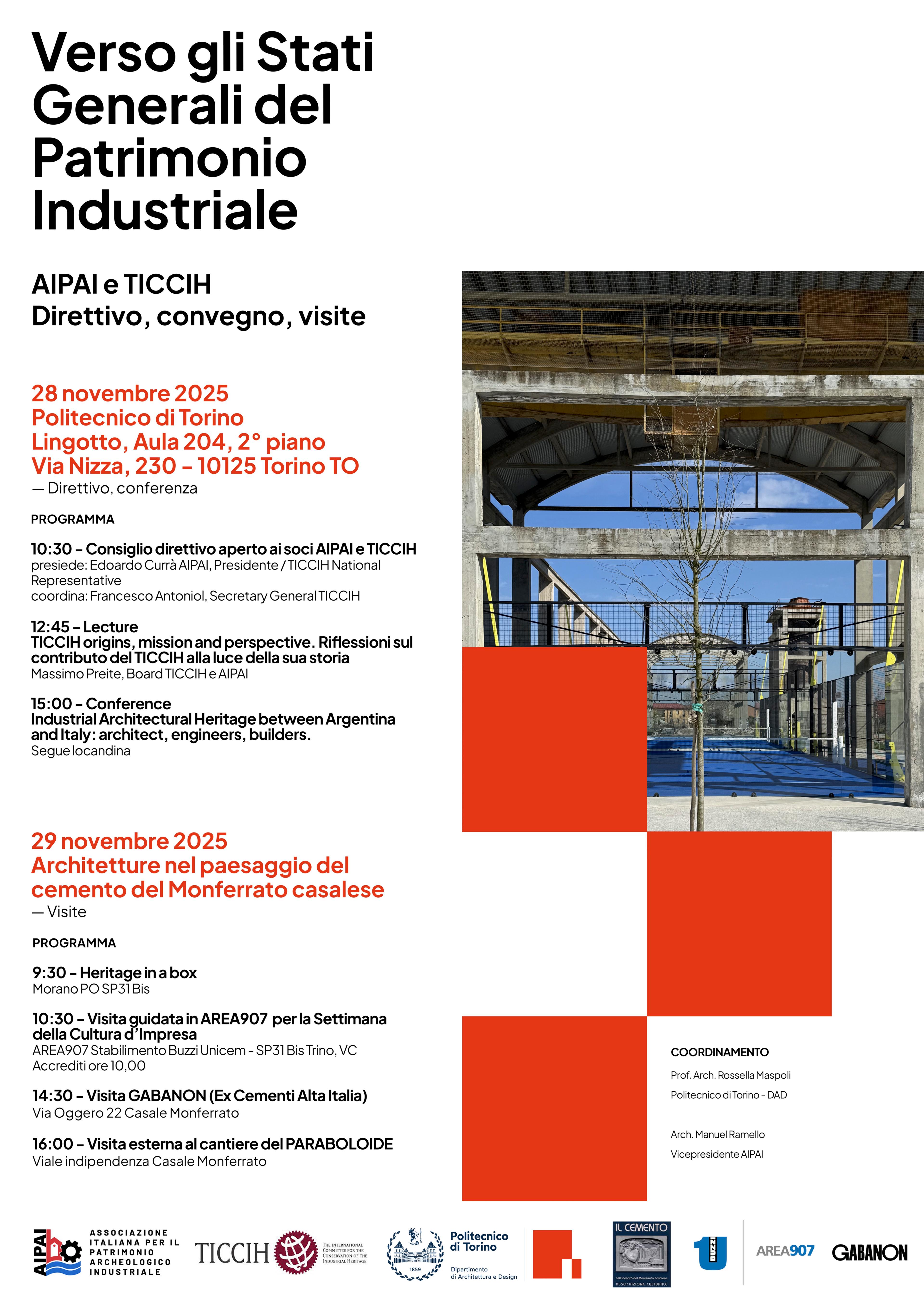 Sabato 29 novembre AIPAI – Associazione Italiana per il Patrimonio Archeologico Industriale e TICCIH Italia – The International Committee for the Conservation of the Industrial Heritage erano a Trino, ospiti di Buzzi in AREA907, per una visita guidata dedicata nella Settimana della Cultura dâImpresa di Confindustria e Museimpresa, in preparazione degli Stati Generali del Patrimonio Industriale 2026 e nellâambito di un programma di visite sul tema Architetture nel paesaggio del cemento nel Monferrato casalese che si è svolto a margine del Direttivo annuale delle due associazioni.